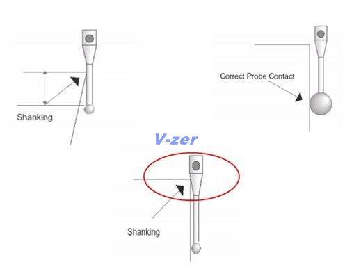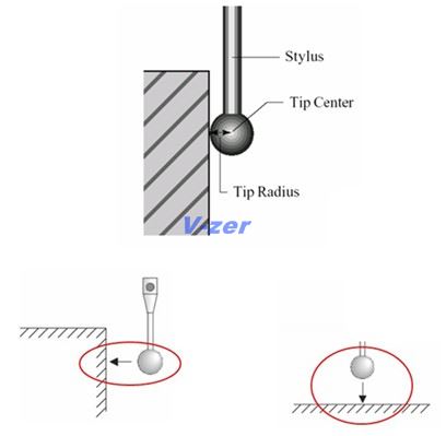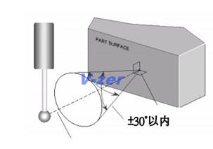 正确有效的使用探针来碰触量测工件,可以避免掉许多量测上不必要的误差的产生。但是在实际碰触取点时,至少需保持与垂直面角度在±30°以内。以防止探针打滑而造成量测的重复精度不佳的情况产生。再借助系统的探针补偿来实现数据的准确性。